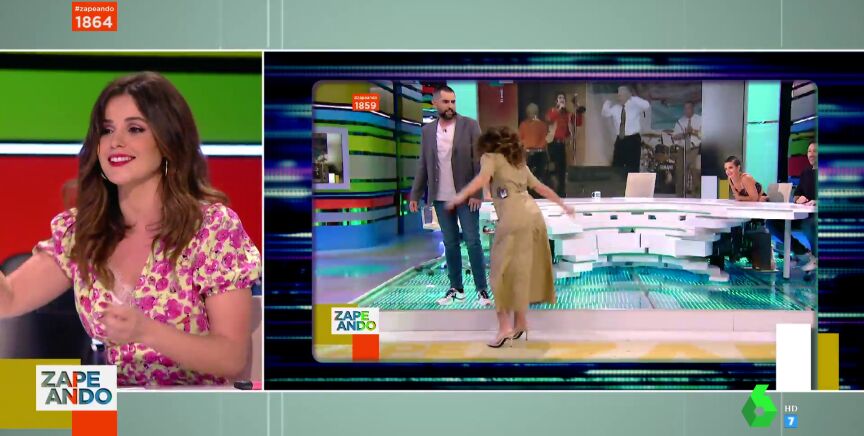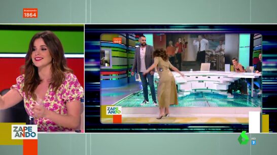 El extraño baile que Dani Mateo y Marta Torné protagonizaron hace unos días en Zapeando genera reacciones desiguales entre los espectadores, que Santi Alverú ha presentado en el plató: mientras algunos se 'indignaron', otros lo disfrutaron mucho. Es el caso Ángeles, de Sevilla, que envió al programa un audio pleno ataque de risa en el que lanzaba una súplica a Dani Mateo: "Por favor, no bailes Dani".