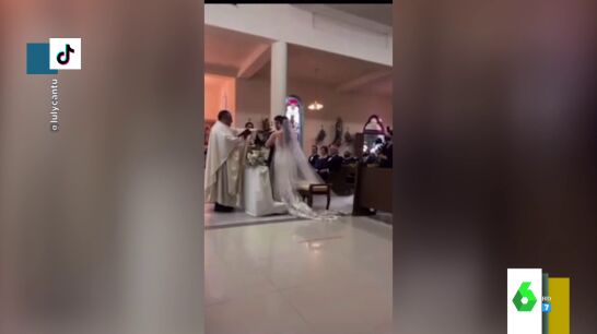 Los nervios son un clásico de las bodas y, aunque algunos los manejan bien, otros no tanto. Es el caso del novio que protagoniza el vídeo viral que ilustra esta noticia, que se encontraba pronunciando sus votos cuando sufrió un 'pequeño' lapsus ante el altar.