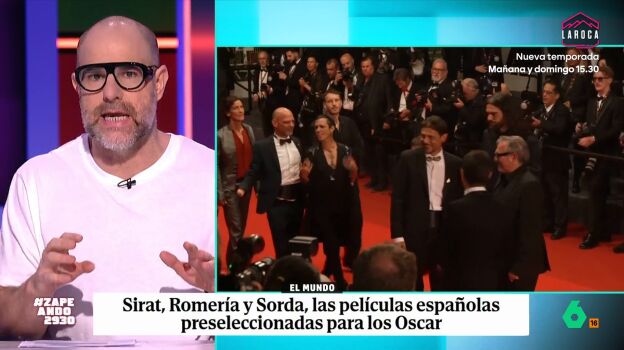 Alberto Rey analiza las tres películas en Zapeando y tiene claro que la Academia de Cine elegirá 'Sirat', una película que, recuerda, pasó por Cannes y volvió con premio, a lo que se suma que "Olivier Laxe disfruta haciendo promo".