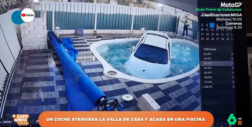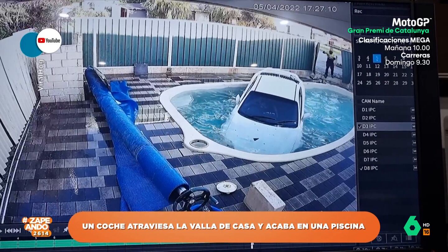 Como se puede ver en las imágenes, la chica pierde el control de su vehículo y termina atravesando una valla y metiéndolo dentro de la piscina de una casa. Varias personas se ponen a ayudarla para conseguir que salga del coche y así el accidente no tenga consecuencias más graves.