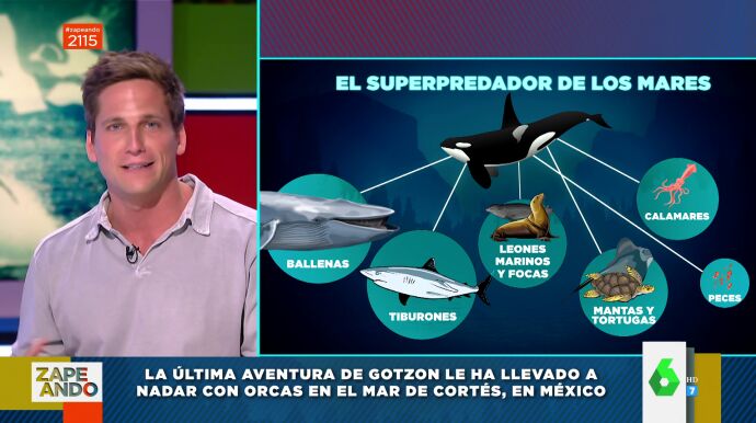 Además, Gotzon Mantuliz ha tenido la oportunidad de bucear con mantas oceánicas. Pueden medir hasta 7 metros de ancho y pesar 3.000 kilogramos. Pese a su embergadura, es un animal muy tranquilo. El colaborador de Zapeando cuenta la bonita experiencia en el vídeo principal de esta noticia.
