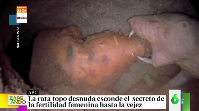 "Estos días se ha descubierto que hay un animal capaz de tener hijos hasta una edad muy avanzada", anuncia Dani Mateo, que ironiza con que no se trata de "Miki Nadal, ni de Julio Iglesias": "Estaba hablando de la rata topo". Según comenta en Zapeando, han descubierto que este animal esconde el secreto de la fertilidad femenina hasta la vejez: "O sea, que puede procrear hasta que muere", explica.