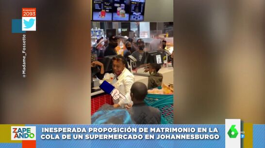 "Las pedidas de matrimonio sorpresa no son siempre preciosas", afirma Miki Nadal, de hecho "muchas son lamentables". Como la de la mujer protagonista de este vídeo viral, a la que su pareja pide matrimonio en la cola de una hamburguesería y mientras ella está distraída. "La chica está avergonzada", destaca el de Zaragoza, al igual que la dependienta que le atiende: "Se echa la mano a la cara y todo".