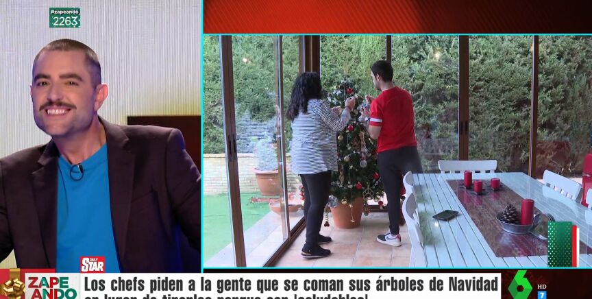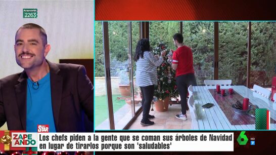 "Yo me hago un menú completo", no puede evitar reaccionar Dani Mateo al conocer la noticia de que varios chefs internacionales han propuesto comerse el árbol de Navidad en vez de tirarlo como forma de reciclaje. Puedes escuchar los cómicos comentarios de los zapeadores en este vídeo.