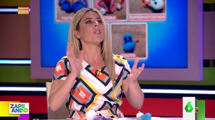 Santi Alverú saca en Zapeando, y por petición de una espectadora, los peluchitos de los órganos reproductivos con los que Valeria Ros intentó hace unos días explicar la reproducción humana, pero "no dio ni una", según la espectadora.
