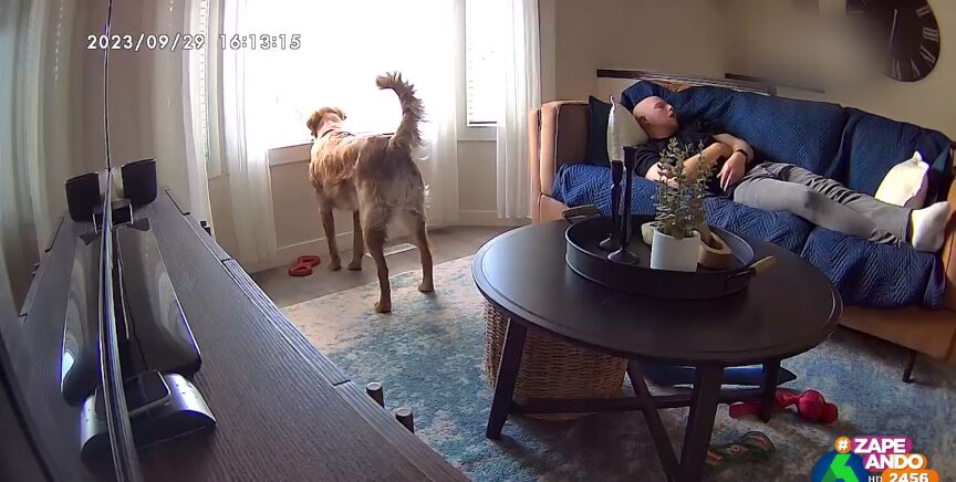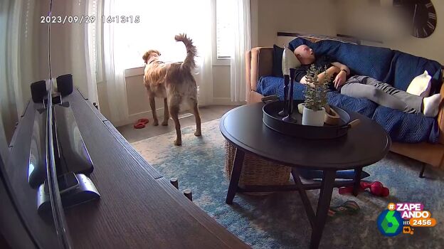 Valeria Ros presenta un vídeo en el que se puede ver a un señor durmiendo la siesta en su sofá plácidamente. Su perro está mirando por la ventana y, de repente, se pone a ladrar.