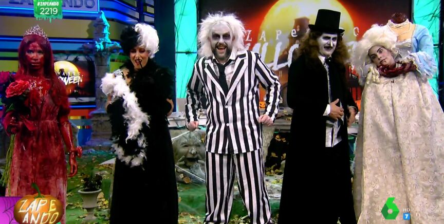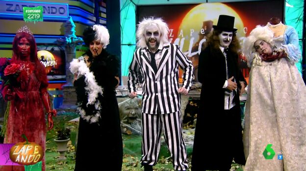 Se acerca Halloween y en Zapeando lo celebran de la mejor forma que saben, enfundándose en sus disfraces más terroríficos. El primero en salir es Dani Beatle Juice: "Bienvenido a este especial de Halloween. Vengo del inframundo dispuesto a dejaros a todos muertos con mis chistes", se presenta, para luego hacer lo mismo con el resto de sus compañeros.