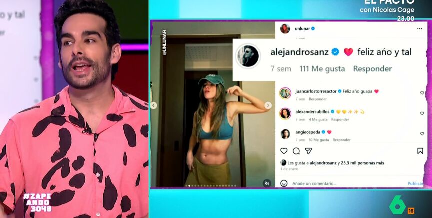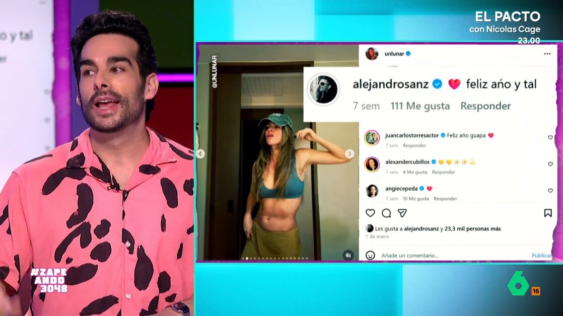 Además, Alejandro también dejó un mensaje a la actriz en una de sus fotos de Instagram hace tiempo. Sanz le deseaba feliz año. "Menudo mensaje, a mí ya me has conquistado", comenta, irónico, Dani Mateo. "Cuando un tío te pone 'feliz año' es porque le gustas de verdad", contesta Sanguino.