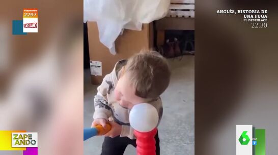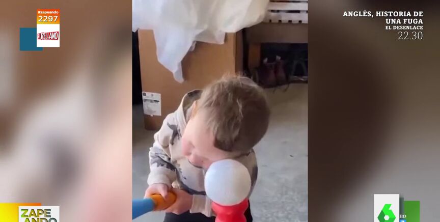 Lorena Castell muestra a sus compis de Zapeando el adorable viral de un niño que hace caso a su padre de forma literal y deja la cabeza pegada a la bola cuando va a batear.