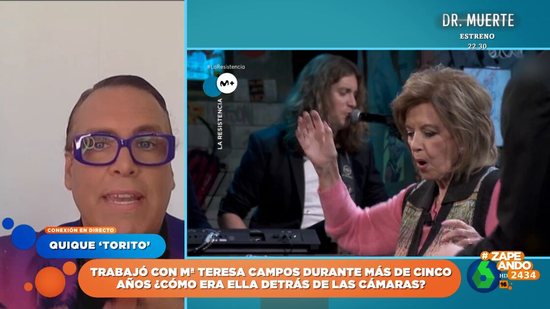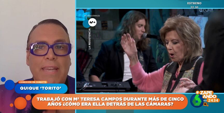 Toritoconecta con Zapeando para homenajear a María Teresa Campos, con quien compartió plató de televisión durante algo más de cinco años en el programa 'Qué tiempo tan feliz'. "Era una tía súper profesional", recuerda, aunque reconoce que también tenía sus manías: "No le gustaba hablar con nadie (antes de los directos)". De hecho, muchos invitados se sorprendían".