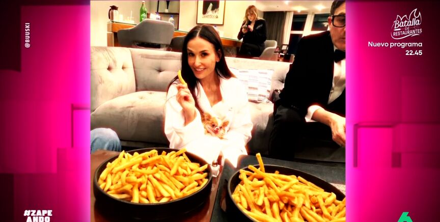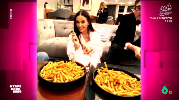 Sin embargo, la protagonista de 'La sustancia' se lo tomaba con filosofía y se daba un "homenaje" con, apunta Isabel Forner en el vídeo sobre estas líneas, "12 kilitos de patatas fritas para quitarse el disgusto": "La pobre llevaba toda la noche sin comer algo con sustancia", comenta la zapeadora.