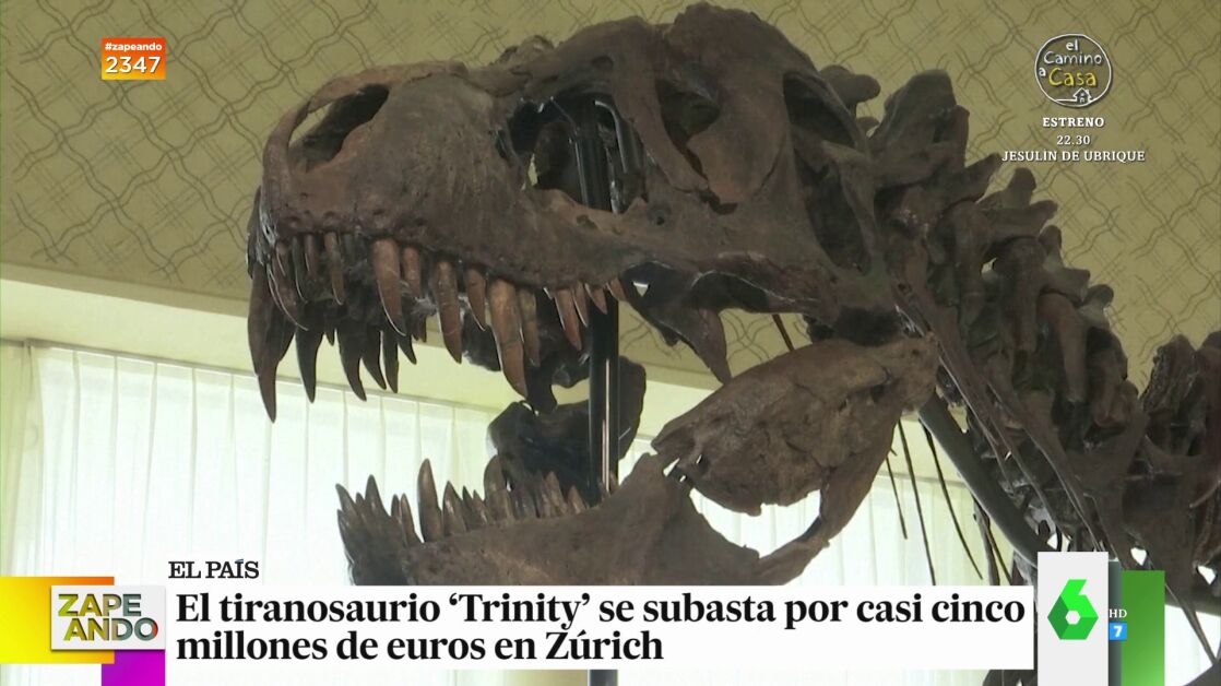 Los esqueletos de dinosaurios son tendencia y el número de personas que quiere hacerse con uno está en aumento, a pesar de que los precios pueden alcanzar cantidades "astronómicas", explica Cristina Pedroche. El esqueleto del tiranosaurio Trinity se ha subastado en Zúrich por cinco millones de euros, es el primero en Europa, aunque no se conoce la identidad del comprador.