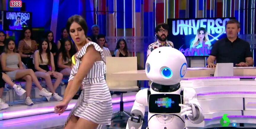Carolina Iglesias regresa al plató de Zapeando con una compañía muy especial, un robot que sabe identificar a las personas, hablar y hasta bailar.