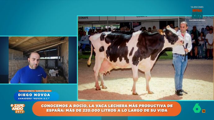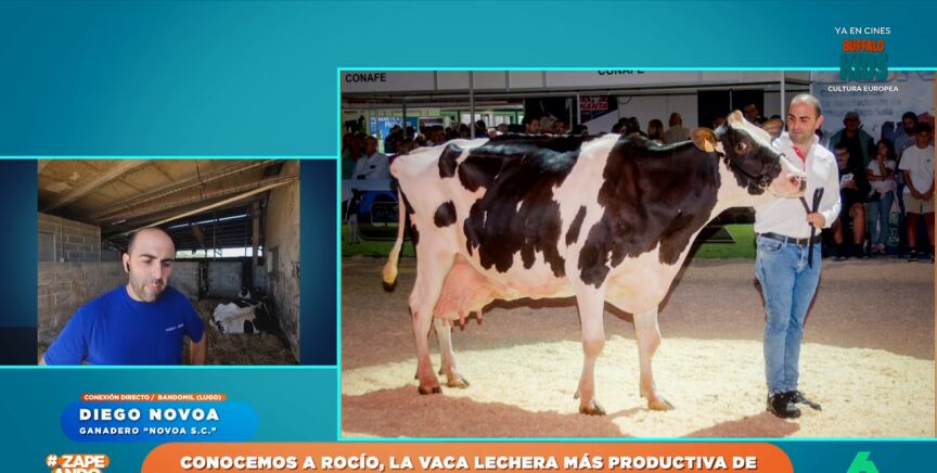 Rocío, que así se llama, tiene 12 años y su producción que duplica la leche que produce una vaca de sus mismas características. Diego Novoa, su dueño, cuenta en Zapeando cómo lo han conseguido.
