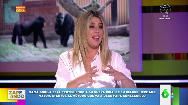 Valeria Ros se sincera con sus compañeros de Zapeando tras ver un viral de los celos que tiene un orangután de la nueva cría de la manada: "Mi hija también los tiene por Pepe, mi perro".