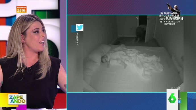 Valeria Ros cuenta en el plató de Zapeando cómo todos los días intenta salir un momento de la habitación de su hija cuando ésta se está durmiendo, pero siempre termina despertándose y llamándola. "Intento salir un momento y dice, 'mami', y yo 'nooo'", destaca la zapeadora.
