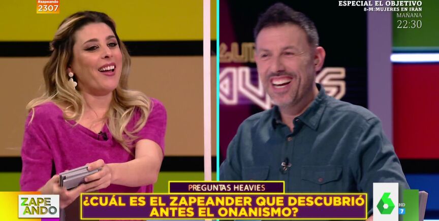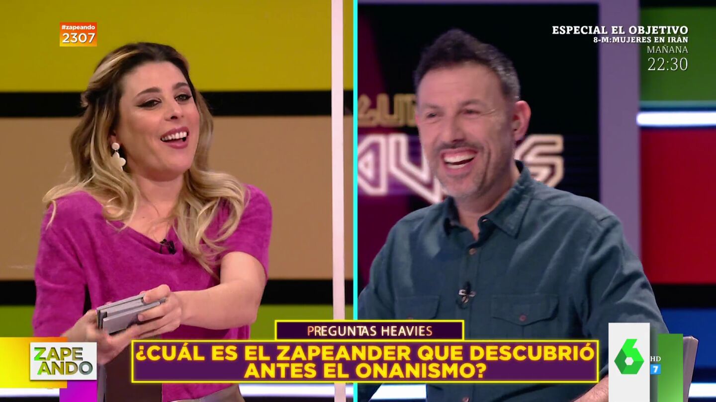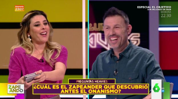 Valeria Ros se somete en el plató de Zapeando a lapregunta heavyde una espectadora: ¿cuál es el zapeador que descubrió antes el onanismo? "El primero es Iñaki, que es un pajillero...", afirma Valeria Ros, desatando las risas de todo el plató: "Si te das cuenta, en todas las fotos que sale Iñaki Urrutia hay una mano que no está".