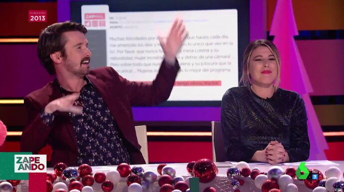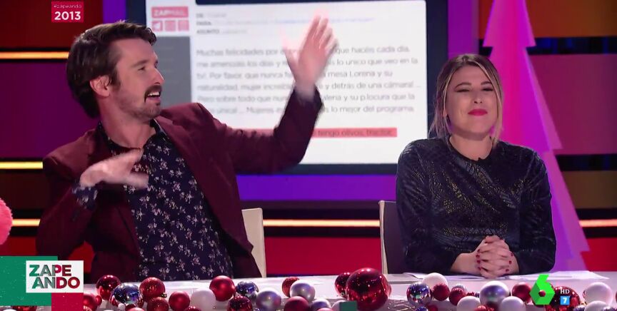 Para Miki Nadal, Santi Alverú y Valeria Ros hacen buena pareja. Pero, ¿qué piensan ellos? La reacción de la zapeadora ha provocado los aplausos de su compañero, como puedes ver en este vídeo.