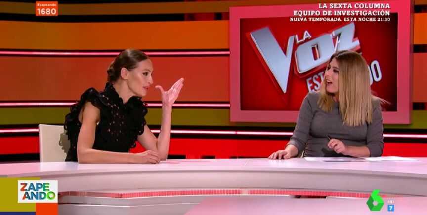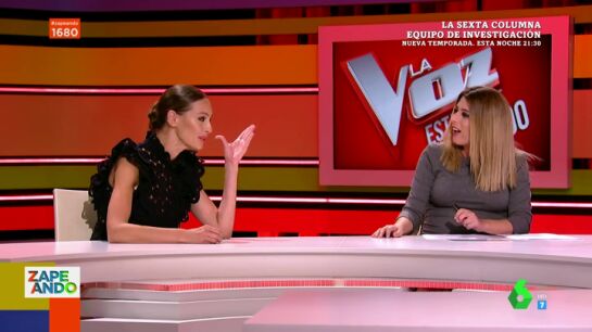 Eva González visita el plató de Zapeando para hablar de la nueva temporada de La Voz, el programa musical que presenta en Antena 3 y que cuenta con caras tan conocidas como Pablo López, Alejandro Sanz, Laura Pausini y Antonio Orozco. Porque, como afirma Dani Mateo, "para quedar bien, la presentadora ya tiene La Voz, y para quedar mal, Zapeando".