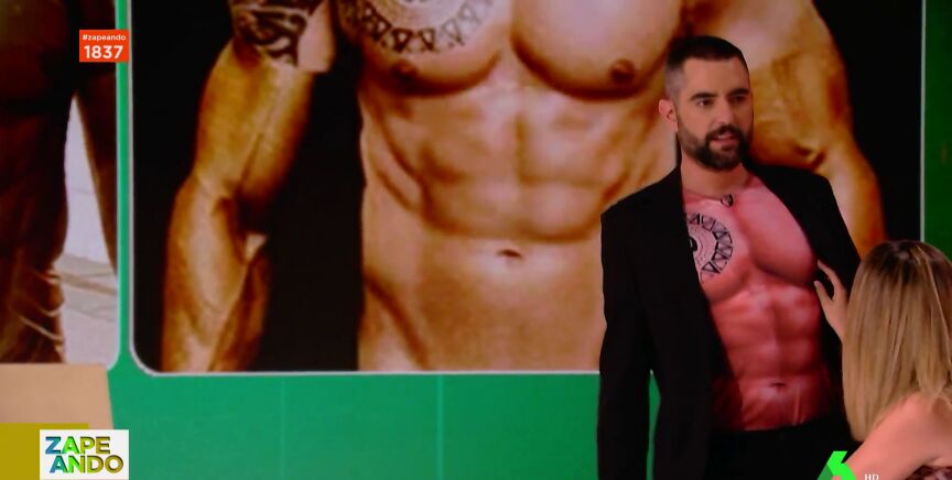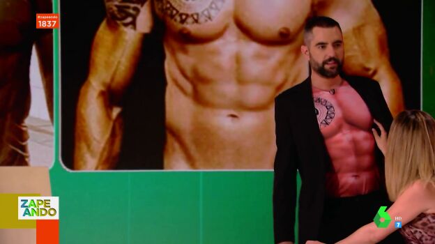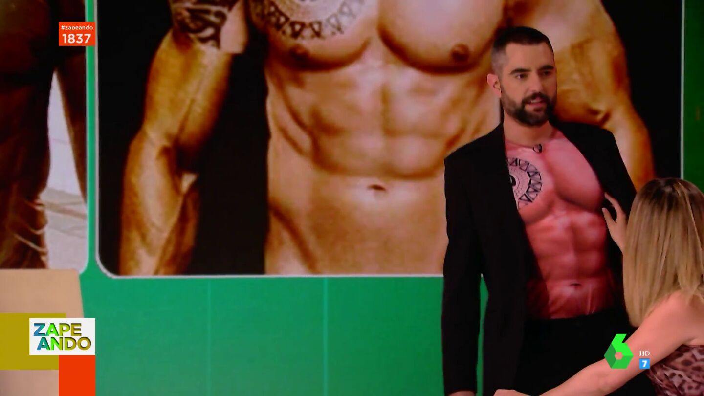 Dani Mateo da la sorpresa en el plató al aparecer con una camiseta de músculos y tatuajes. "¿Puede ser que nos esté poniendo un poco calentitos a todos?", destaca Valeria Ros, que le pide tocarle un pezón en este vídeo.