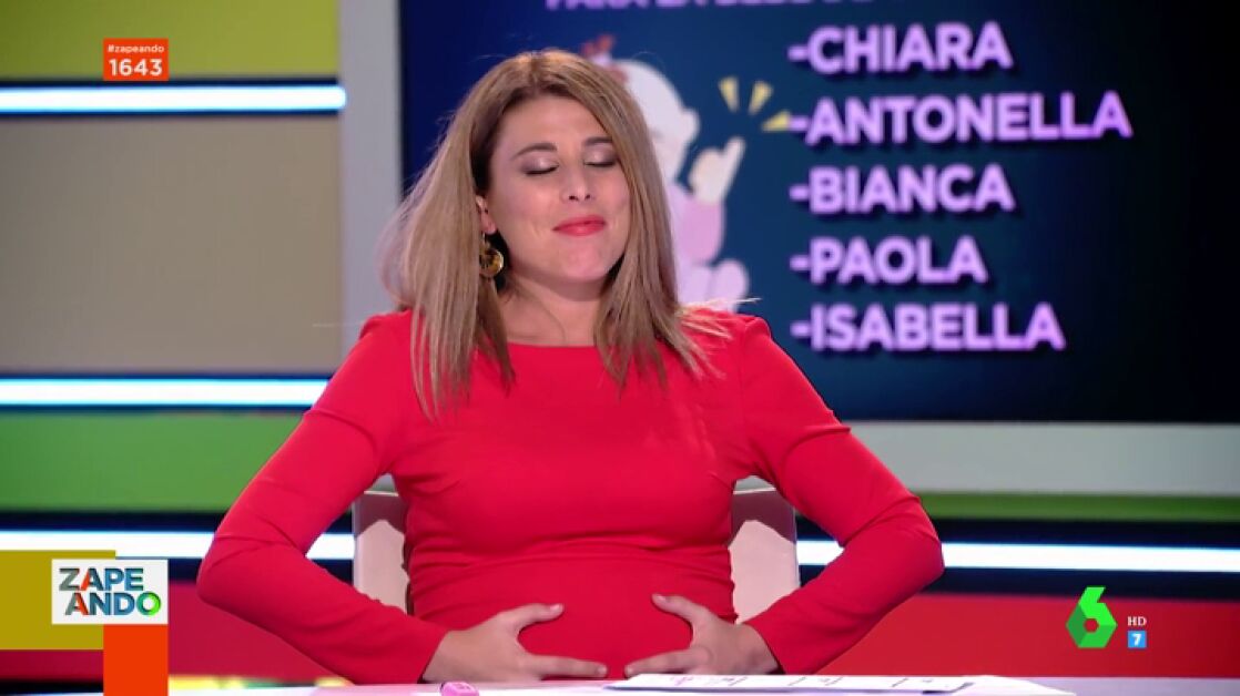 Valeria Ros todavía no tiene claro qué nombre pondrá a su hija. Y es que la zapeadora afirma que quiere un nombre italiano, como su pareja, pero todavía no sabe cuál. Para ayudarla a decidir los espectadores del programa han mandado sus favoritos a Santi Alverú.