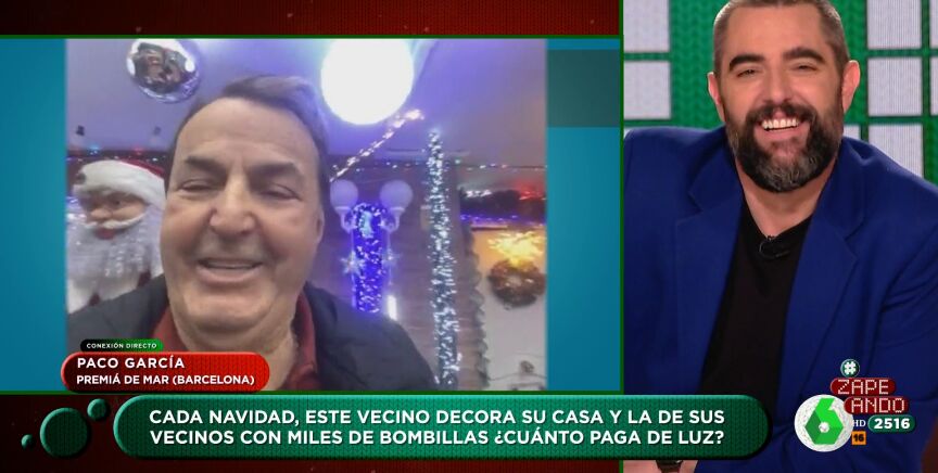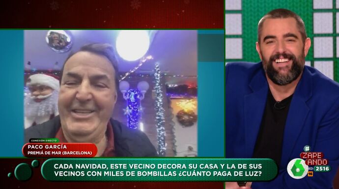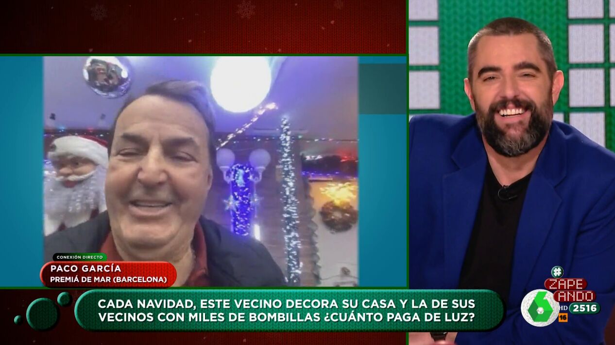 Paco, además, ha hecho un 'house tour' en directo para mostrar a todos los zapeadores como tiene decorada su casa. El interior está lleno también de luces y no falta una figura de Papá Noel y un árbol de Navidad. El señor cuenta que, prácticamente, pone el solo las luces pero que le ayudan a recogerla aunque es un material tan delicado que tarda un mes en ponerlas y otro mes en recogerlas.
