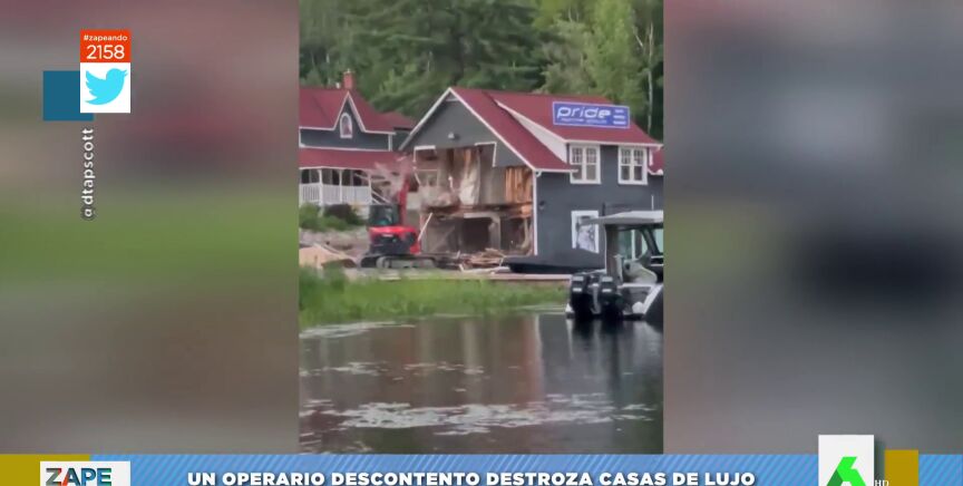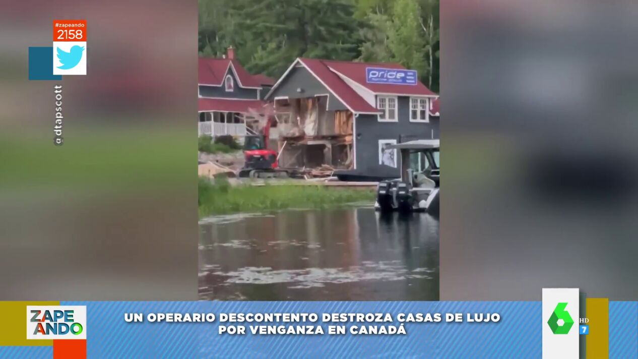 El operario de una excavadora de Ontario se ha vuelto viral después de destrozar varias viviendas de lujo de una urbanización. Puedes ver la venganza contra su jefe, que le costó 5.000 dólares de multa, en este vídeo de Zapeando.