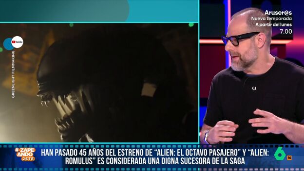 Alberto Rey analiza en este vídeo de Zapeando 'Alien: Romulus', secuela del clásico de Ridley Scott que se ha convertido en un fenómeno de taquilla y comparte algunas divertidas anécdotas del rodaje de la película original.