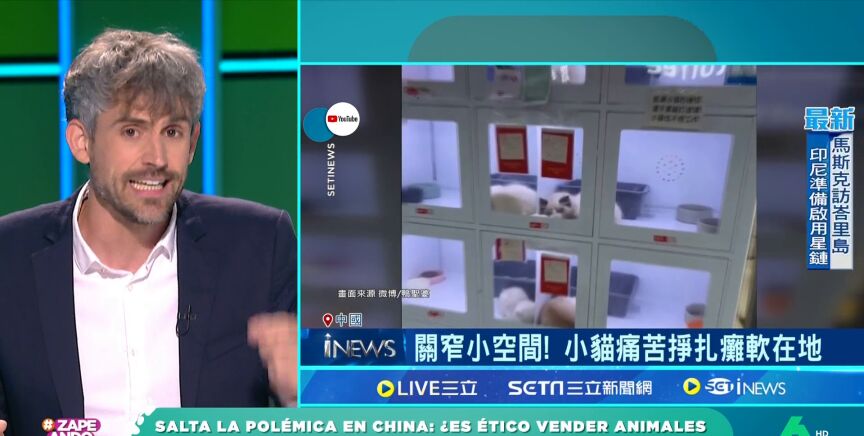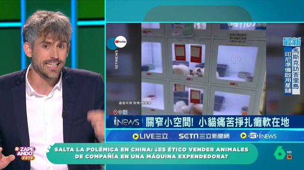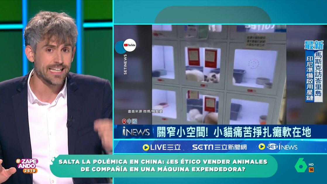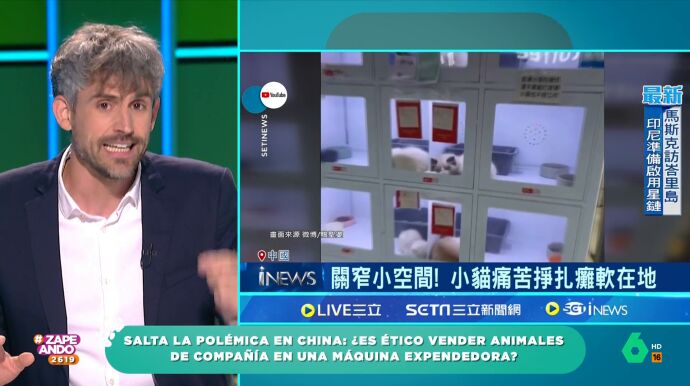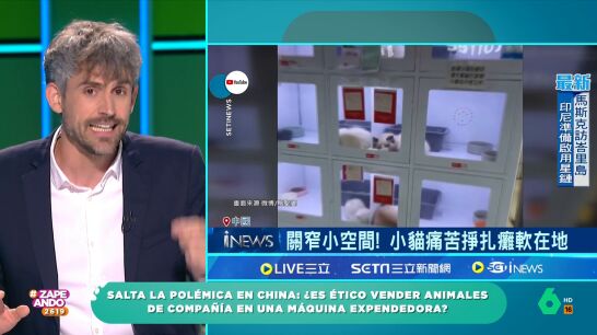 El veterinario Víctor Algra vuelve a Zapeando para hablar sobre nuestras mascotas. Dani Mateo le muestra unas imágenes de la última polémica en China: las máquinas expendedoras animales. En el vídeo se puede ver numerosos gatos encerrados en estos dispositivos a la espera de ser adquiridos por alguien.