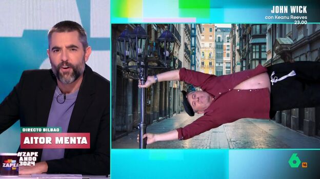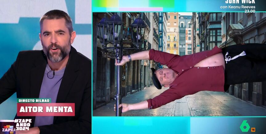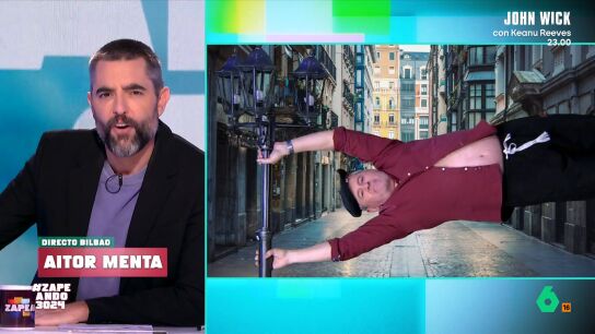 Para conocer de primera mano cómo está la situación en Bilbao, Zapeando conecta con un 'auténtico bilbaíno', el corresponsal del programa en el norte 'Aitor Menta'. Este es sorprendido sujetándose a una farola debido al fuerte viento que hace en la capital.