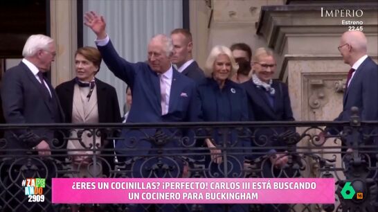 ¿Eres un cocinillas? Pues ¡perfecto! Porque en estos momentos el rey Carlos III está buscando un cocinero para el palacio de Buckingham. Juan Sanguino da más detalles sobre esta peculiar oferta de empleo en este vídeo de Zapeando.