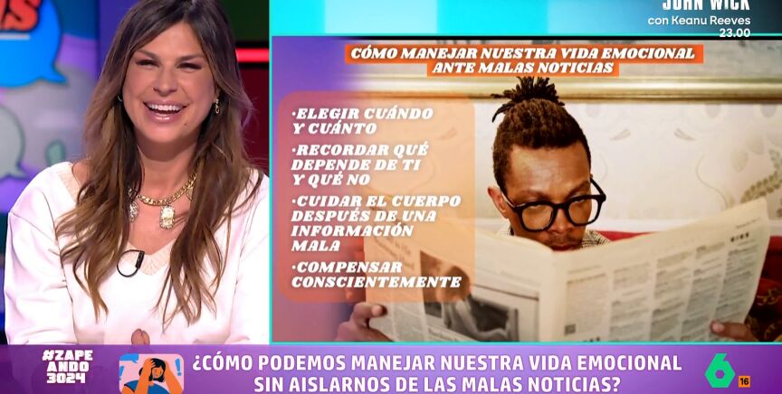 Día a día consumimos malas noticias, por ese motivo, Raquel Perera vuelve a Zapeando para dar varios consejos sobre cómo podemos manejar nuestra vida emocional sin aislarnos de esas malas noticias. La coach expone que "no se trata de vivir al margen del mundo sino de aprender a relacionarnos mejor con toda la información".