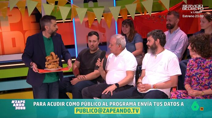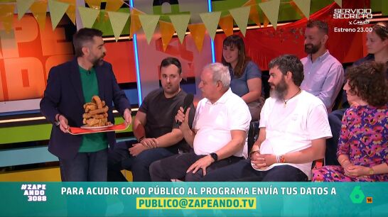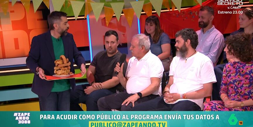 El presentador de Zapeando, a favor de que el público lleve comida, ha alucinado con la altura que alcanzan los torreznos apilados sobre el plato.