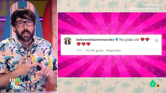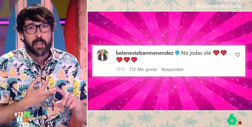 Aunque, como indica el zapeador, una de las felicitaciones más llamativas ha sido la de Belén Esteban. La 'princesa del pueblo' felicitaba a la pareja con el siguiente mensaje: "No jodas olé". Además, acompañaba su felicitación con cinco emojis de corazón.