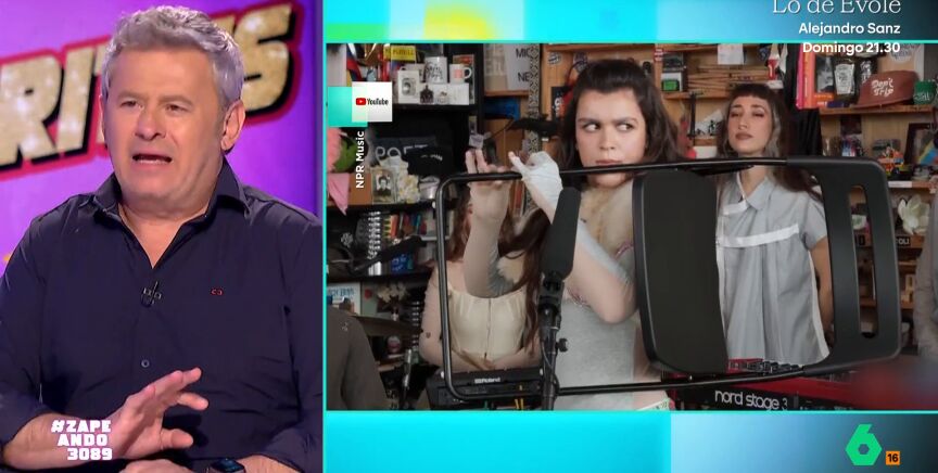 Nuestra Amaia Romero ha sido la protagonista del último episodio del 'Tiny Desk', el famoso ciclo de conciertos de la radio NPR, en EEUU, que luego se emitió en YouTube. La pamplonica ha vuelto a sorprendernos. Esta vez ha cogido una silla y se ha puesto a tocarla como si fuera una flauta. Los colaboradores de Zapeando no daban crédito a tal dominio.
