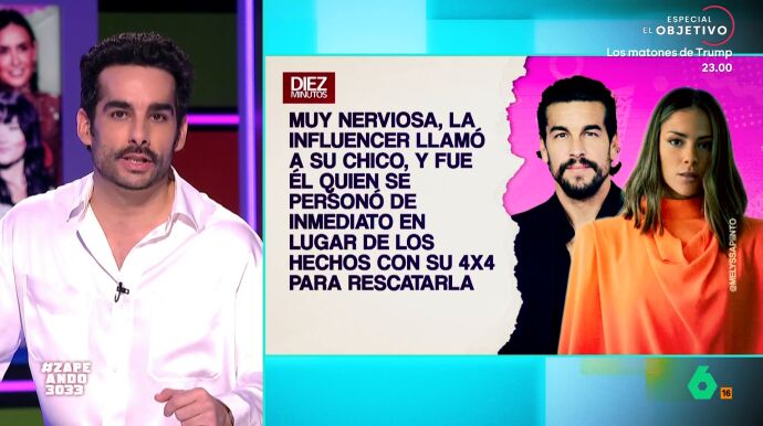 La revista 'Diez Minutos' ha publicado una fotografía de Melyssa Pinto y Mario Casas. En ella, se puede ver a la pareja con cara de preocupación ya que, como reza el titular que se puede ver en portada, el actor estaba consolando a la influencer después de tener un golpe con el coche. ¿Qué le ocurrió a Melyssa? Juan Sanguino lo cuenta en Zapeando.