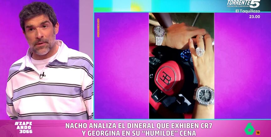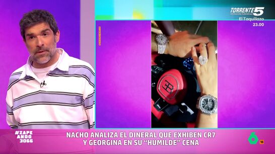 Georgina Rodríguez y Cristiano Ronaldo se han ido de cena este fin de semana y la influencer no ha dudado en publicar una imagen en sus redes sociales en las que demuestran, como señala Nacho García, cuánto se quieren. "Os quiero demostrar cuánta envidia les tengo", añade el zapeador, antes de levantarse para analizar la fotografía que ha subido Rodríguez en la pantalla gigante.
