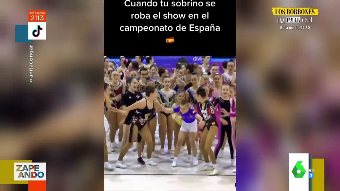 Dani Mateo muestra unas emocionantes imágenes del Campeonato de España de Gimnasia Acróbatica y Danza. Y es que una orgullosa tía ha subido a Tik Tok el vídeo de su sobrino en el que sus compañeras le piden que baile la coreografía de 'Slomo' con la que Chanel quedó tercera en Eurovisión.