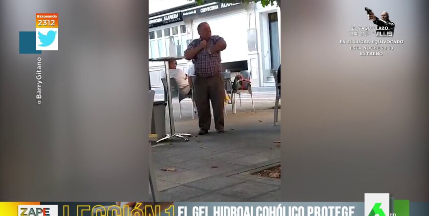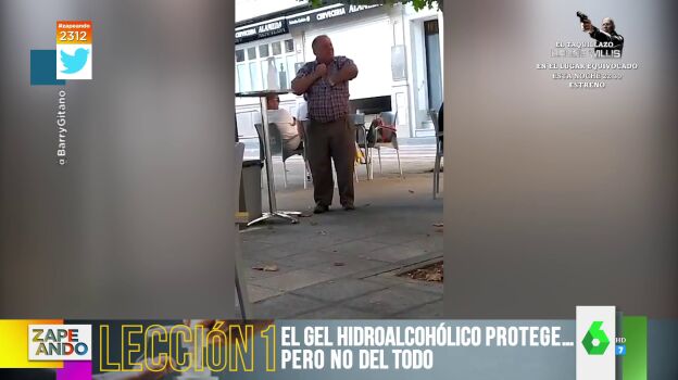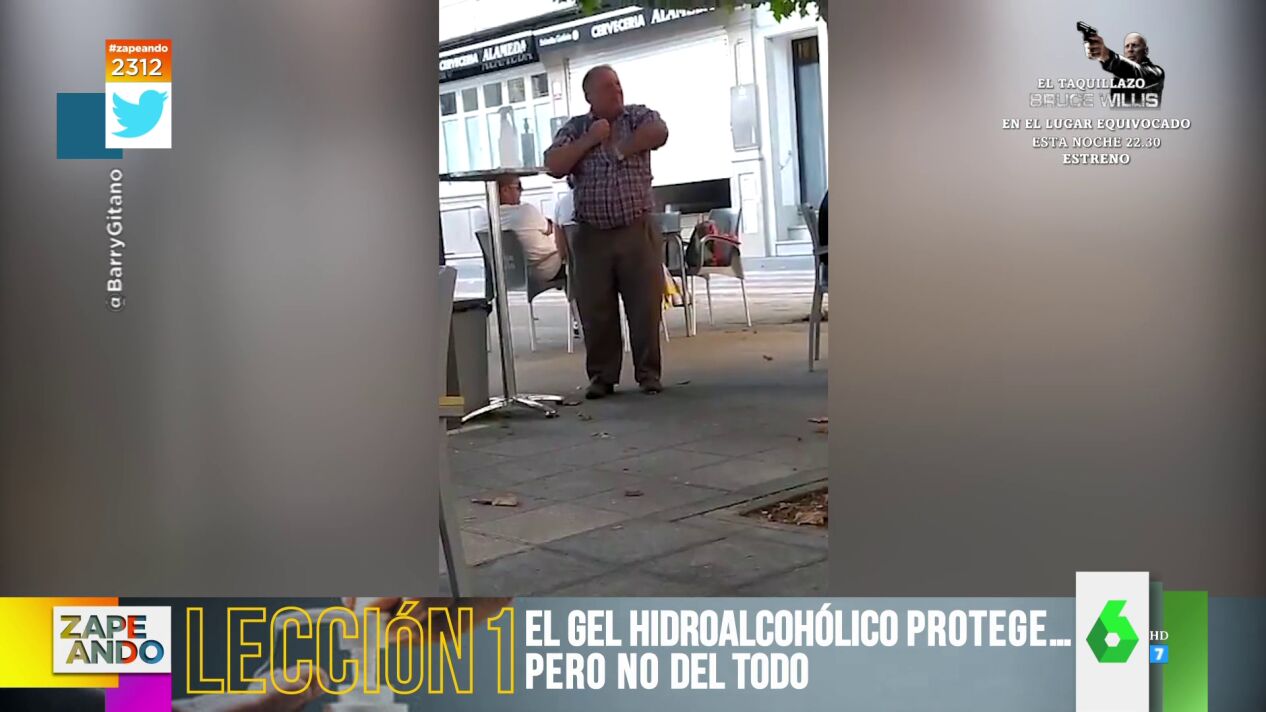 "Llevó la desinfección un poquito más allá", comenta la colaboradora provocando las risas en el plató. Puedes ver cómo se frotó la axila, el pecho y el cuello en medio de una terraza con el gel hidroalcohólico en el vídeo principal de la noticia.