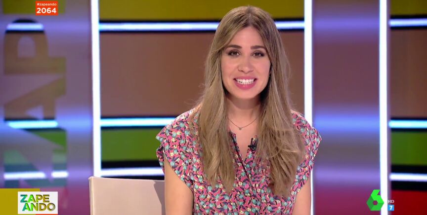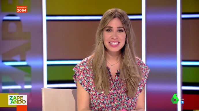 Esta es la reacción de la zapeadora que, tras mostrar y comentar el vídeo en el que un joven hace pesas en el gimnasio como si no tuviera vértebras, sufre un pequeño incidente en pleno directo de Zapeando