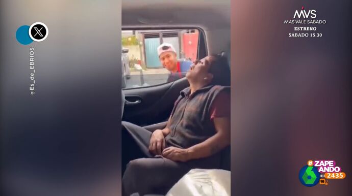 "Si veis a vuestro colega con la babilla colgando, nada de despertarle con un toquecito, lo mejor es tirarle ocho litros de agua por encima", señala la zapeadora, como hace un chico con su amigo en este vídeo viral. "Encima era agua como de limpiar pinceles, está blanca de pintura. Ese tío está muerto ahora", comenta Dani Mateo.