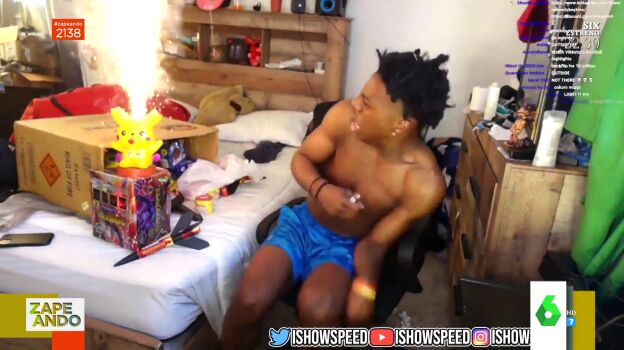 "Lo que pasó después sólo sorprendió a Speedy y a su madre", comenta la colaboradora de Zapeando justo antes de mostrar los efectos de esta 'mascletá indoor' en la que se confunden los gritos de terror del youtuber y su progenitora con los sonidos de los petardos y un Pikachu en llamas. Puedes ver este momento en el vídeo sobre estas líneas.