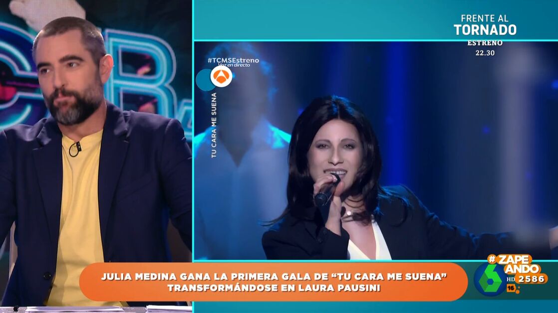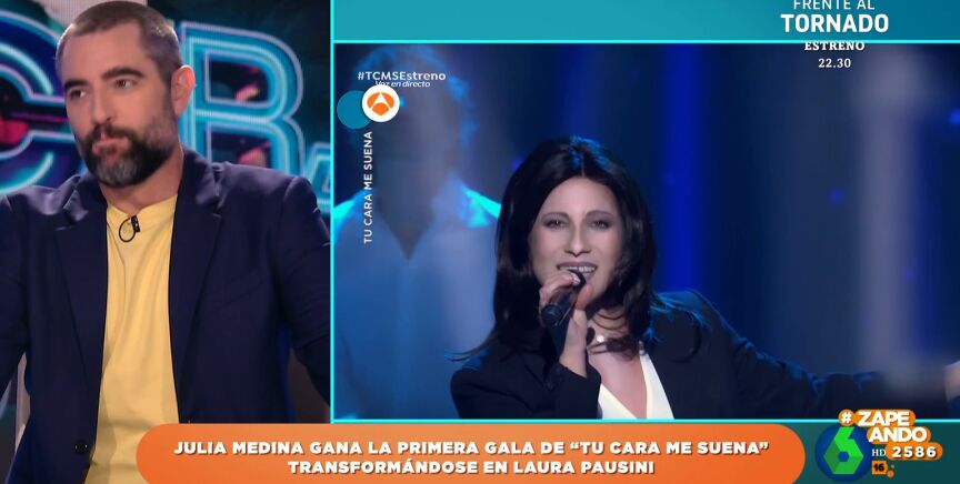 La zapeadora Valeria Ros se ha estrenado ya en 'Tú cara me suena' imitando a Britney Spears y, "aunque en nuestros corazones la ganadora es ella", como afirma Ares Teixidó, finalmente la ganadora de la primera gala del concurso fue Julia Medina, participante de 'Operación Triunfo', que logró la victoria imitando a Laura Pausini.