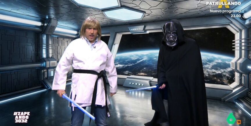 Dani 'Vader' e Iñaki 'Skywalker' se enfrentan dentro de la siniestra 'Estrella de la Suerte'. No te pierdas la divertida parodia de Zapeando en el vídeo principal.