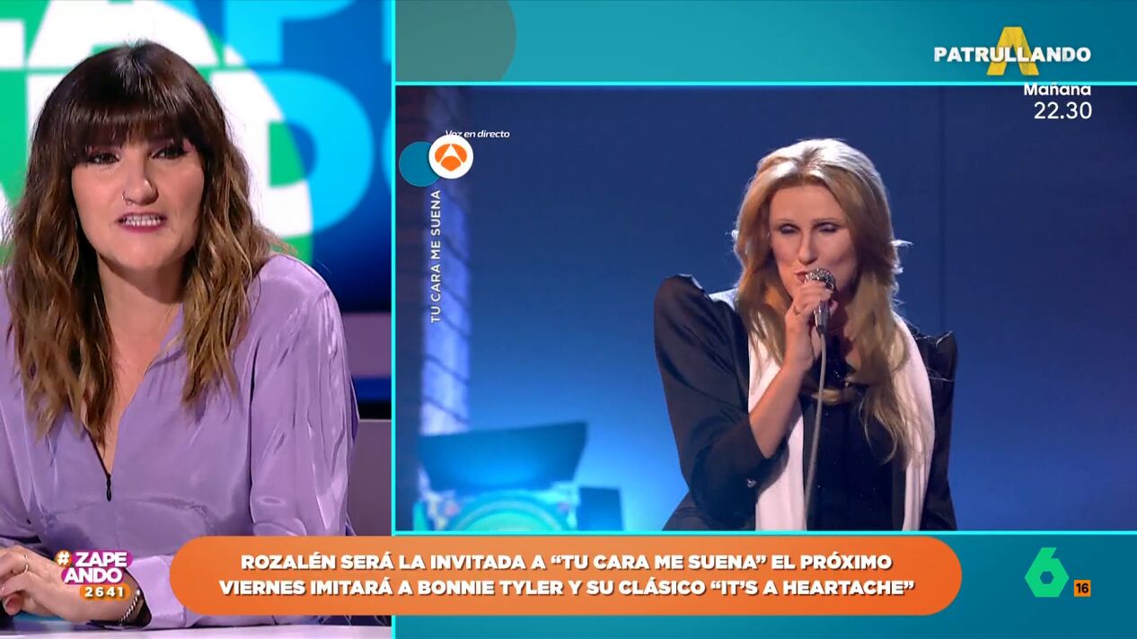 Rozalén se transformará en Bonnie Tyler y cantará en la próxima gala de 'Tu cara me suena' la icónica canción 'It's a heartache'. El video no solo ha sorprendido a las zapeadoras y al público, sino que también a la propia cantante, pues no había visto como había quedado su actuación.