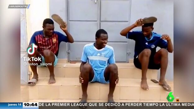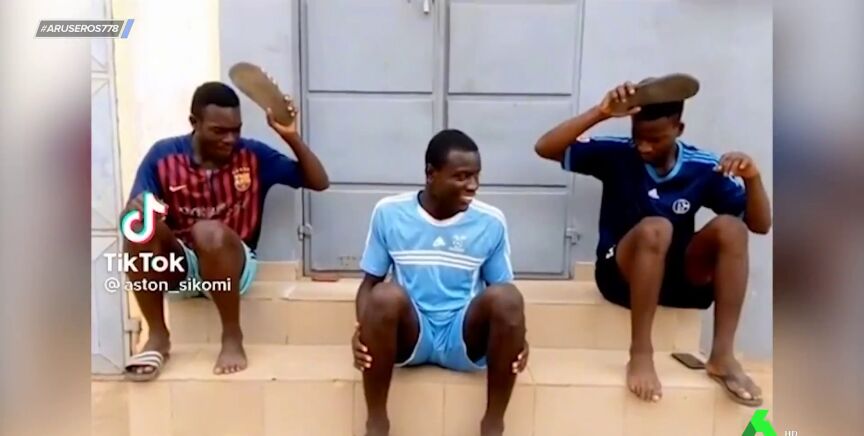 - Chanclada: Este es el juego que se han inventado estos tres jóvenes aburridos. Solo necesitáis una chancla cada uno. La persona de medio tiene que tocar a los demás y ellos interceptar el movimiento con un chancletazo. De momento, este joven consigue hacerlo sin que le rocen.