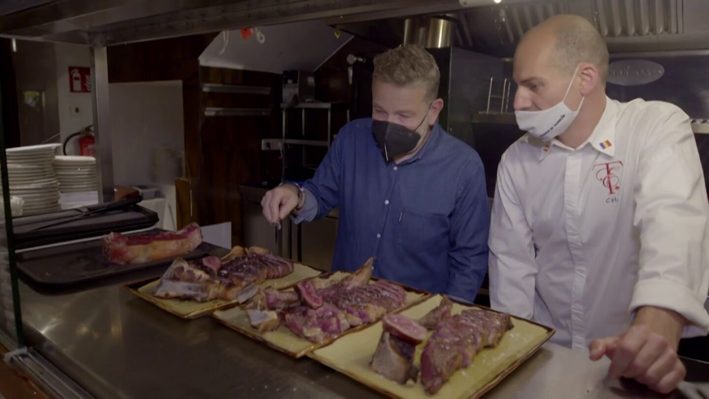 El camarero de un restaurante de Madrid pierde los nervios ante las preguntas de Chicote para saber si la carne que sirven es realmente de Kobe: "¡Baja la cámara!".