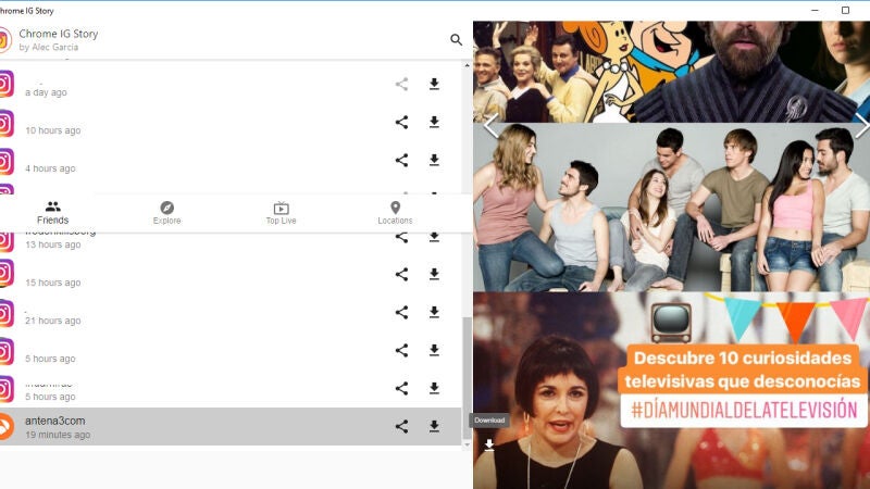 Una vez cliques en Chrome IG Story se desplegará una lista con todas las Stories que tus contactos han publicado en las últimas 24 horas y las podrás ver de manera anónima.