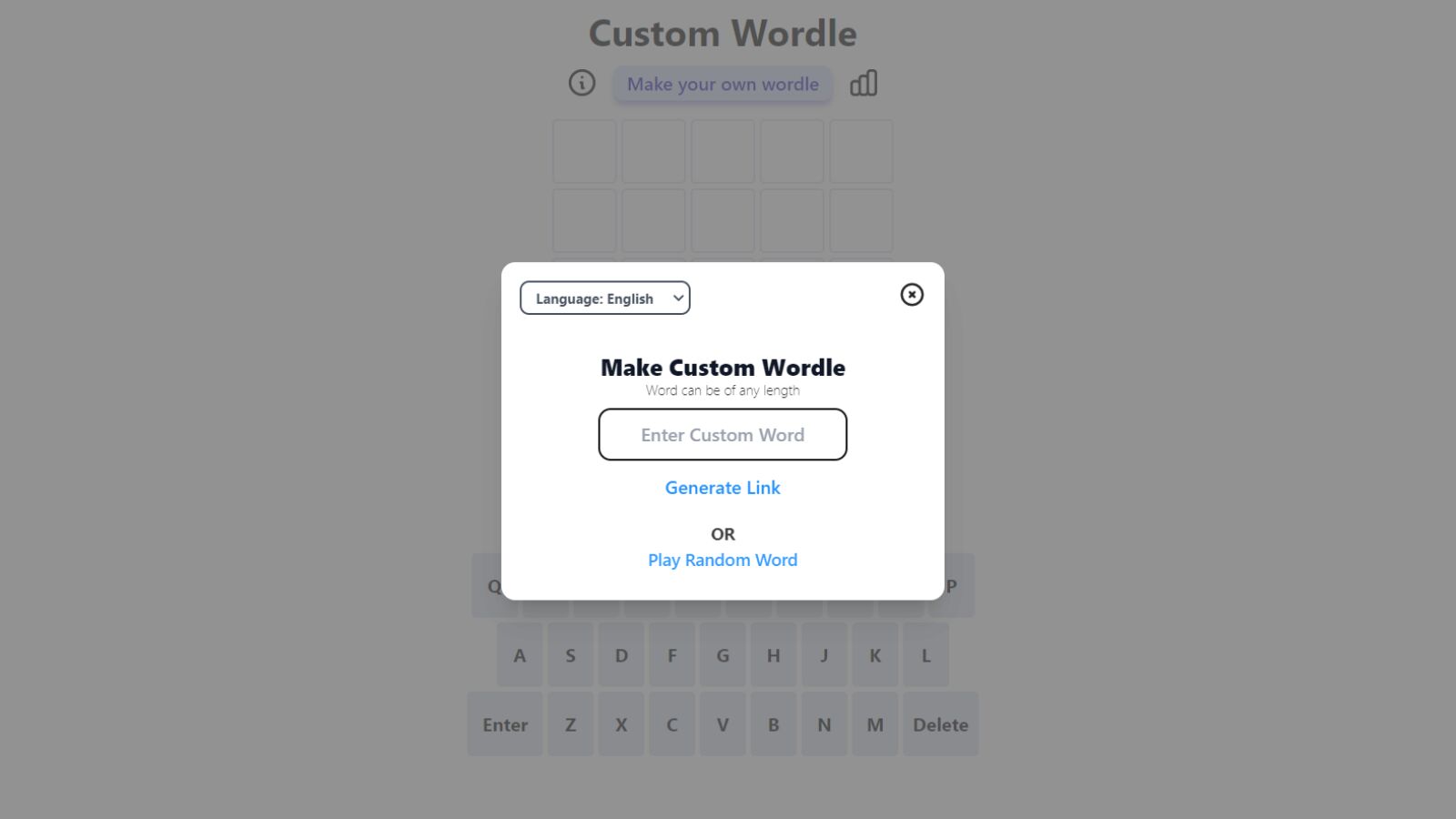 Además de dar la posibilidad al usuario de crear su propio juego, Custom Wordle también permite a los jugadores adivinar otras palabras, por lo que son, en realidad, dos juegos en uno. En la página de inicio del juego, si se selecciona 'Play Random Word', el usuario podrá adivinar una palabra escogida al azar por el propio juego.