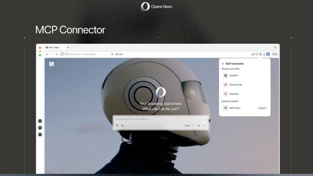 Opera Neon integra MCP Connector para conectar herramientas de inteligencia artificial como ChatGPT o Claude directamente al navegador y permitir que actúen en tiempo real sobre el contenido web.